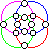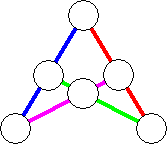 Para considerar que una solución es diferente de otra nos fijamos en los números que componen cada grupo. Así, en una estrella mágica, un grupo de números lo forman los números que hay en un segmento. Estas dos expresan una misma solución porque tienen los mismos números en sus segmentos. Esta figura solamente tiene una solución. |