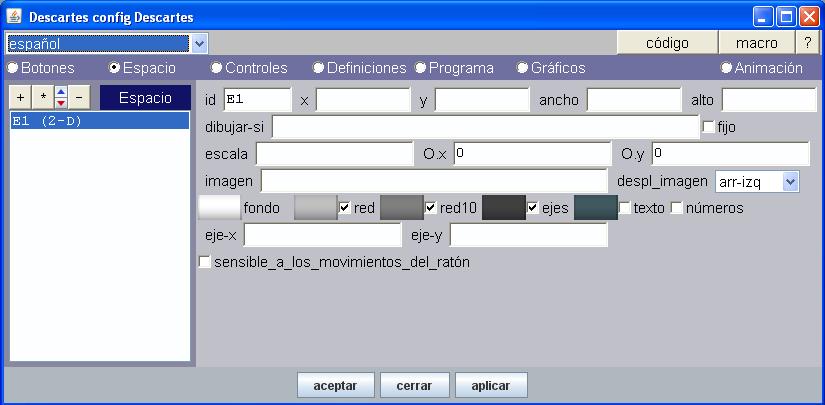 Espacio determina la escala, los ejes de coordenadas, el fondo, puede ser fijo o moverse.