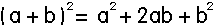 suma de dos términos. - El cuadrado de una suma es igual al cuadrado del primer término, más el doble del primero por el segundo, más el cuadrado del segundo término. |